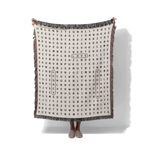 Wrap yourself in the freedom of the trail with this woven throw blanket, designed as a word search puzzle celebrating the joy of hiking - boots on, heart open.